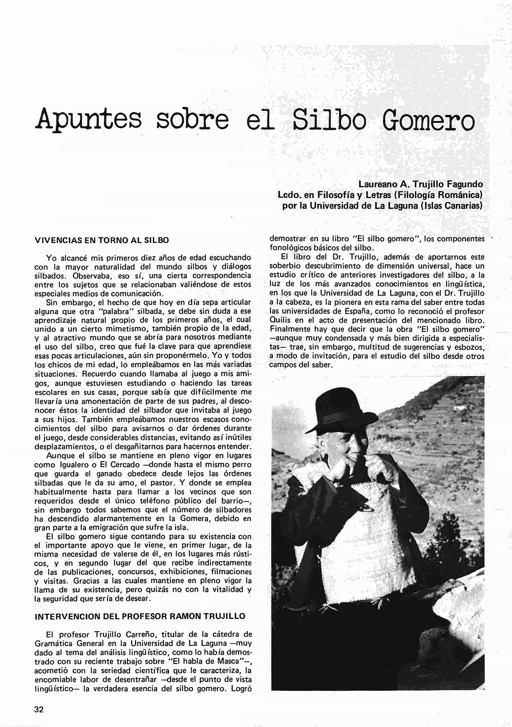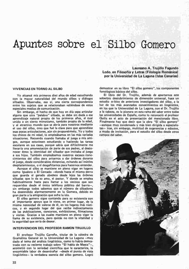 Trujillo Fagundo, Laureano. ‘Apuntes sobre el Silbo Gomero’. 1980. Universidad Autónoma de Madrid, Facultad de Filosofía y Letras, Museo de Artes y Tradiciones Populares.